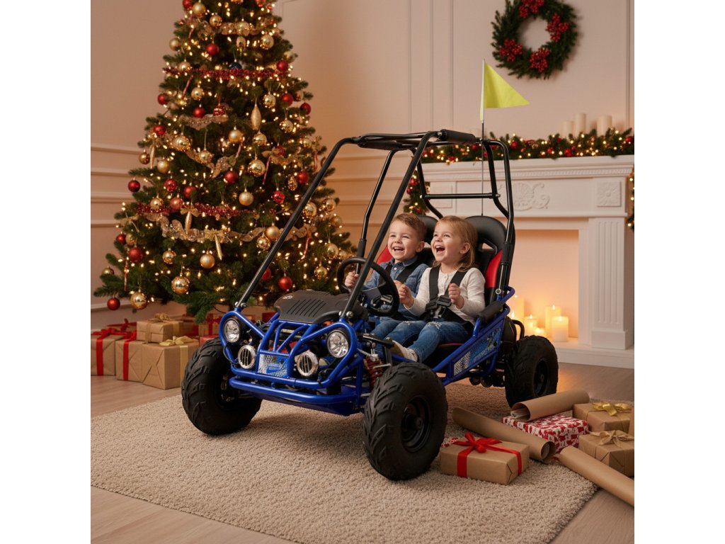 Buggy mají narozdíl od čtyřkolek volant a bezpečnostní rám. Pokud hledáte opravdový adrenalin, jste na správném místě. Bugina Predator je vhodná pro řidiče s výškou cca od 100cm do 160cm, je vybavena bezpečnostním rámem a bezpečnostními pásy. Velkou výhodou je nejen elektrický startér, kterým se nechá buggy nastartovat a vypnout, ale také přední osvětlení a nožní brzda. Buggy jsou dvoumístné s pohonem zadních kol. Součástí je dálkové ovládání, díky kterému můžete buggy na dálku vypnout. Přední osvětlení LED.
