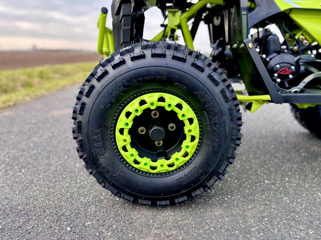 - Pneu zadní: 18x9.5-8