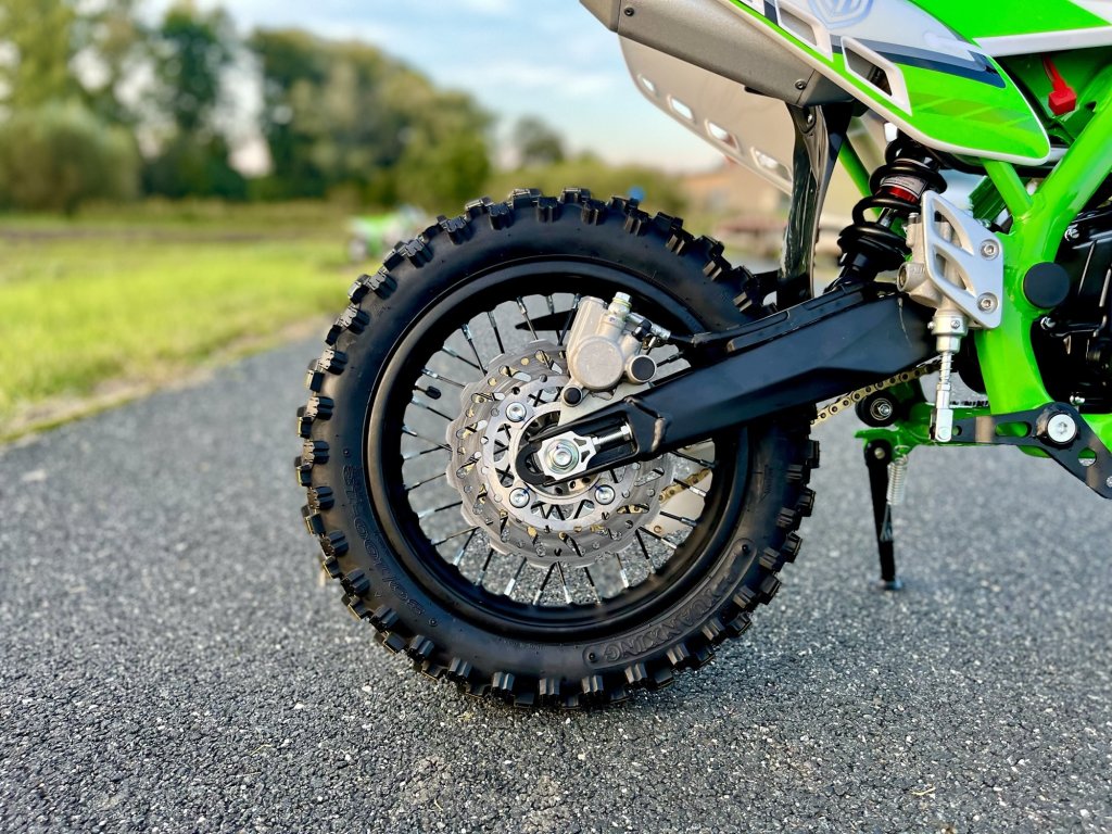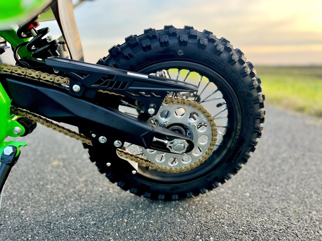 S offroad koly 14/12 a nastavitelným odpružením poskytuje tento pitbike výbornou stabilitu a ovladatelnost, ať už v terénu nebo na polních cestách. Podvozek je navržen tak, aby byl jednodušší i náročnější povrchy, takže si dítě může užít dobrodružství s jistotou, že motorka zvládne jakoukoli vaši výzvu.