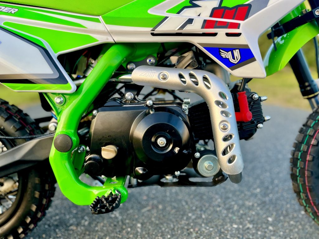 Motor o objemu 70ccm poskytuje dostatek výkonu pro jízdu na zahradě i lehkém terénu, aniž by byl pro dítě příliš náročný. Automatická převodovka umožňuje plynulou jízdu bez starostí o řazení, což je ideální pro začátečníky. Elektrický startér znamená, že startování je hračkou – stačí stisknout tlačítko a dítě může okamžitě vyrazit vstříc novým zážitkům. Hydraulické kotoučové brzdy garantují bezpečnost.