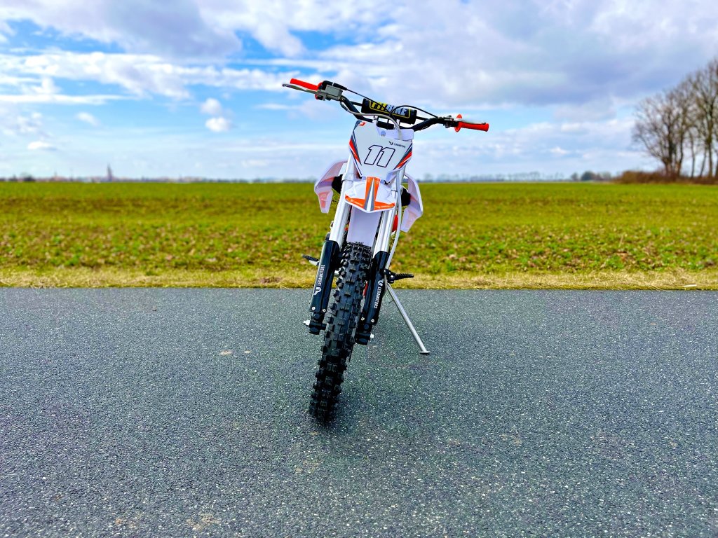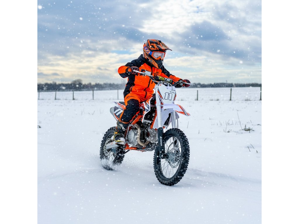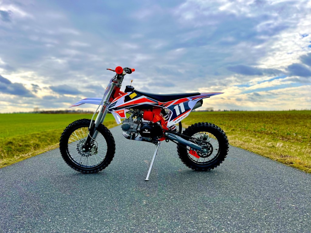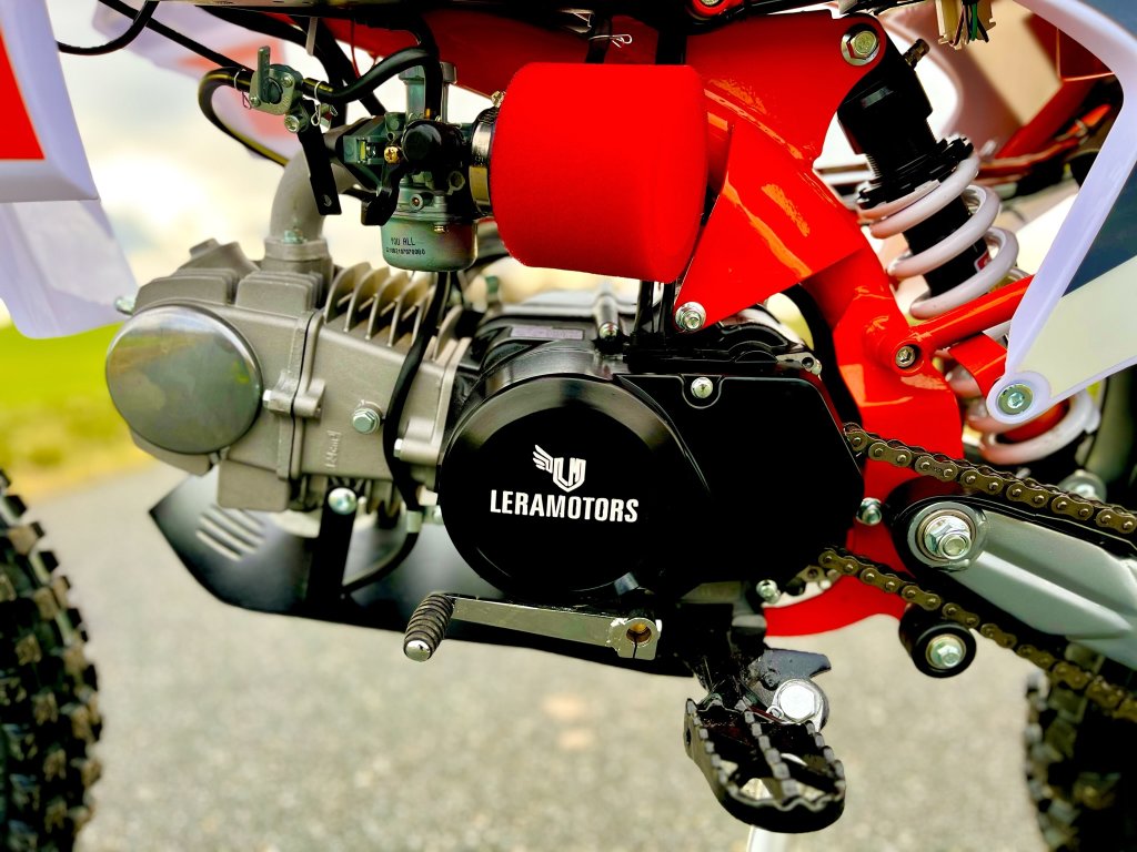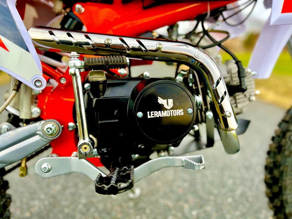 Značkový Pitbike Leramotors Shark 125 pro rok 2025. V moderních zářivých barvách a se sportovně-agresivním vzhledem na kolech 17" a 14”.