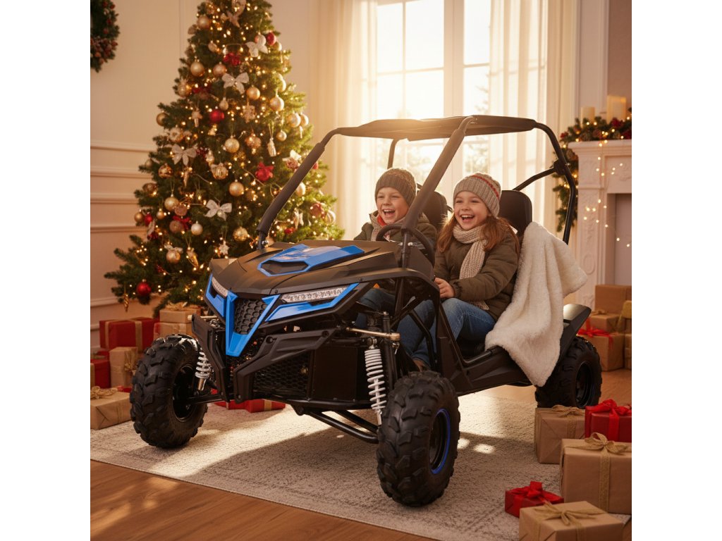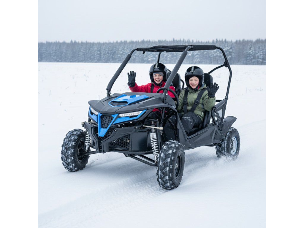 Perfektní svezení pro děti, juniory a lehčí dospělé osoby. Lepší ochranu zajišťuje ocelový rám a sedadla s bezpečnostními pásy. Velká průjezdnost terénem, komfortní odpružení. Elektrický i ruční startér.