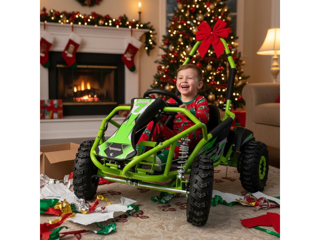 Moderní zelený vzhled osloví každého malého závodníka. Sportovní provedení a kvalitní detaily zaručí, že se buggy stane oblíbenou součástí každého dobrodružství.