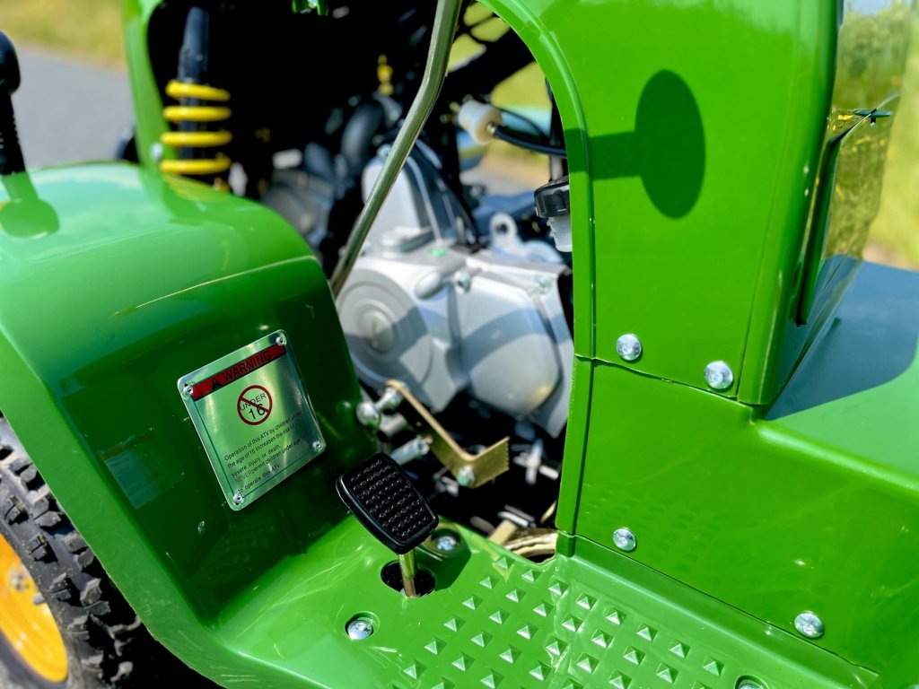 Srdcem traktůrku je robustní 125cc čtyřdobý motor, který dodává dostatek síly a rychlosti, aby vaše dítě mohlo prozkoumat každý terén s lehkostí. Bezpečnost je vždy na prvním místě, a proto je Traktor vybaven spolehlivými brzdami a bezpečnostními prvky, jako jsou ochranné kryty, omezovač rychlosti, což vám umožňuje mít plnou kontrolu nad jízdou svého dítěte.