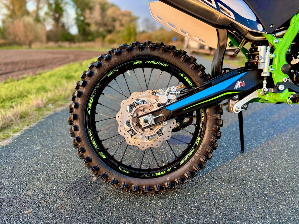 Odolný trubkový rám z vysokopevnostní oceli zaručuje vynikající tuhost a odolnost, což je klíčové pro extrémní off-roadové dobrodružství. Přední kolo 21” a zadní kolo 18” s terénními pneumatikami (80/100-21 vpředu, 100/90-18 vzadu) poskytují perfektní přilnavost a stabilitu i v náročných podmínkách, jako je bahno, štěrk nebo volný písek.