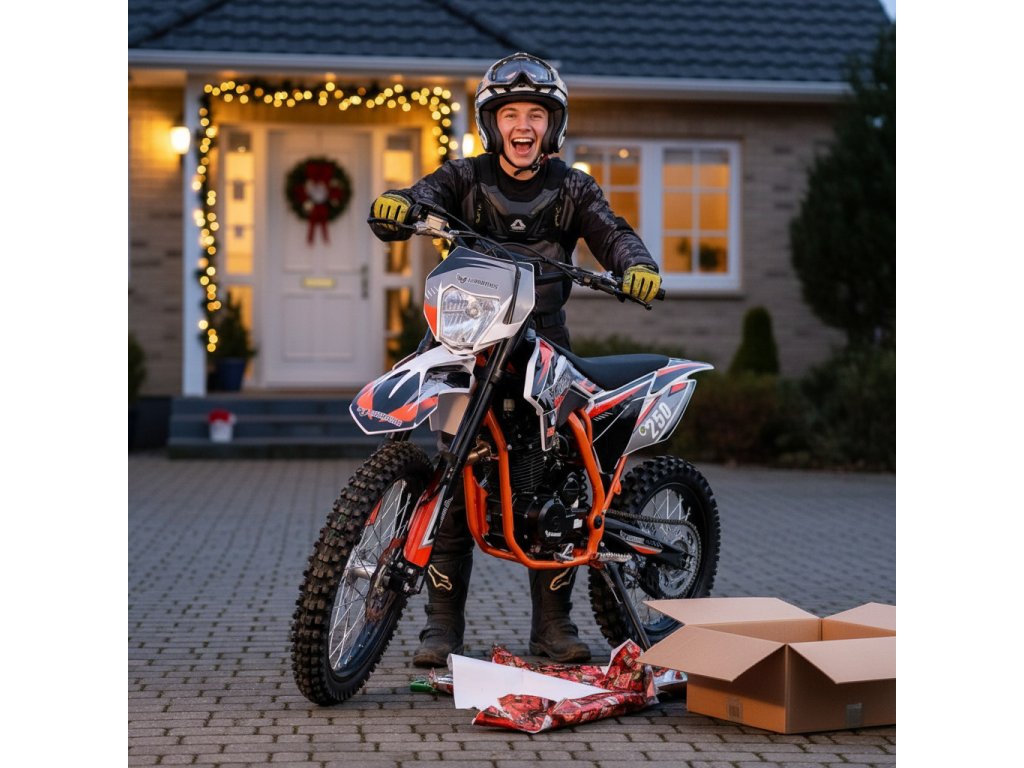 Značkový Pitbike Leramotors Killer 250cc - stylový design pro rok 2025. Manuální 5-stupňová převodovka, laděný výfuk s úchvatným zvukem, přední i zadní hydraulické kotoučové brzdy (zadní-nožní), masivní olejové přední tlumiče, zadní odpružení s nastavitelnou tuhostí, nožní start + elektrický startér, přední kolo 21 palců, zadní kolo 18 palců a masivní rám, přepákovaný zadní tlumič, páčka sytiče na řídítkách. Značkový a osvědčený motor s rozvodovým řetězem.
